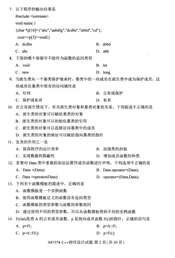 所在位置:安徽自考服务网 > 安徽自考试题题库 > 安徽自考历年真题 > 全国2019年10月自考04737C++程序设计试题