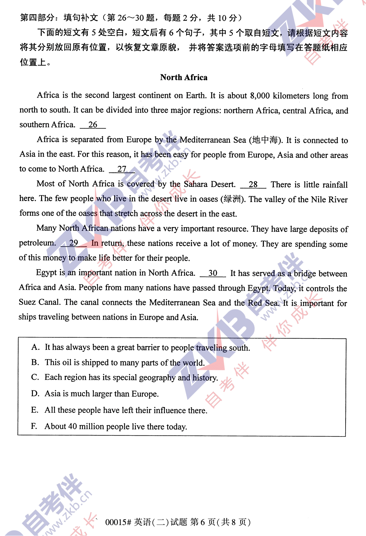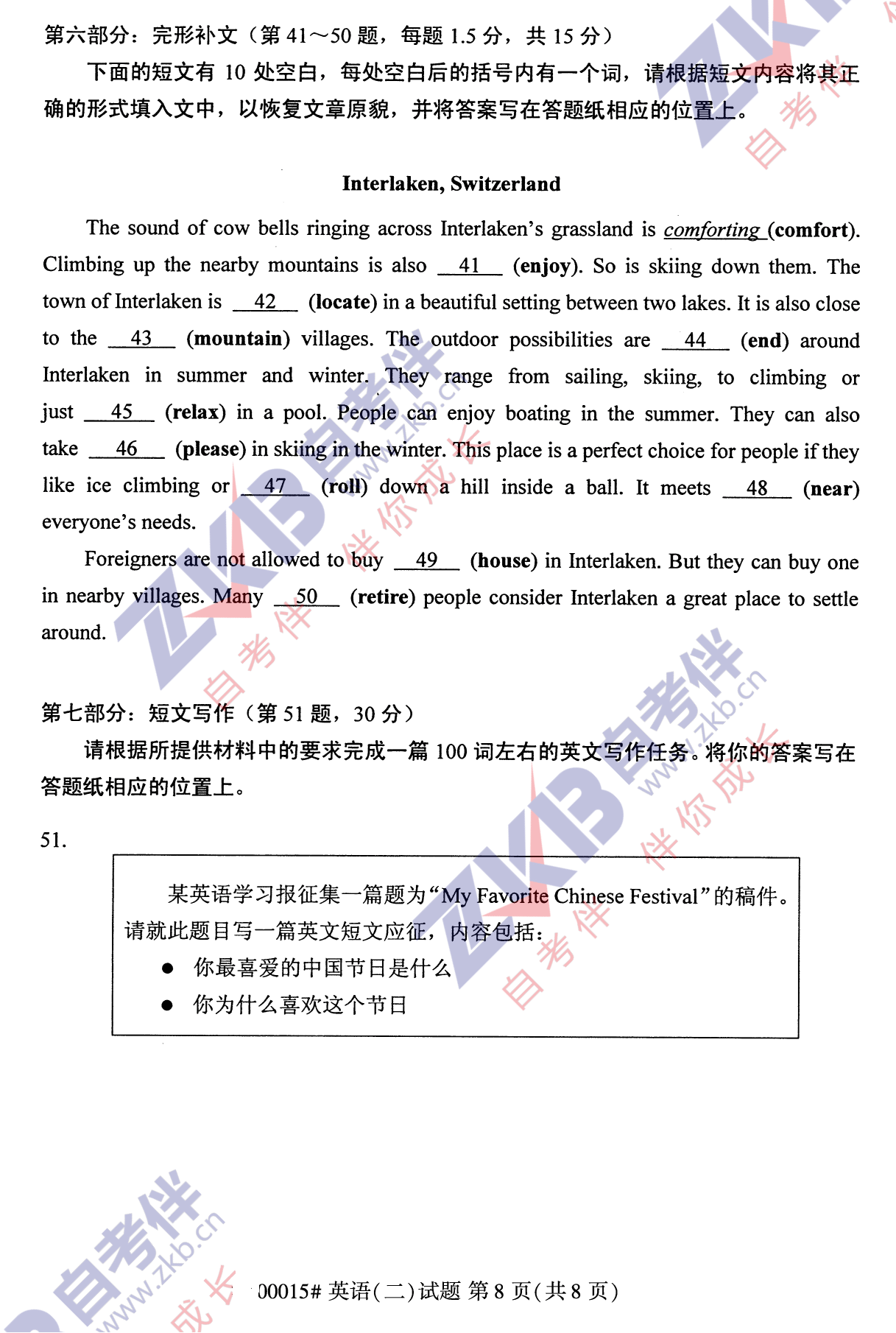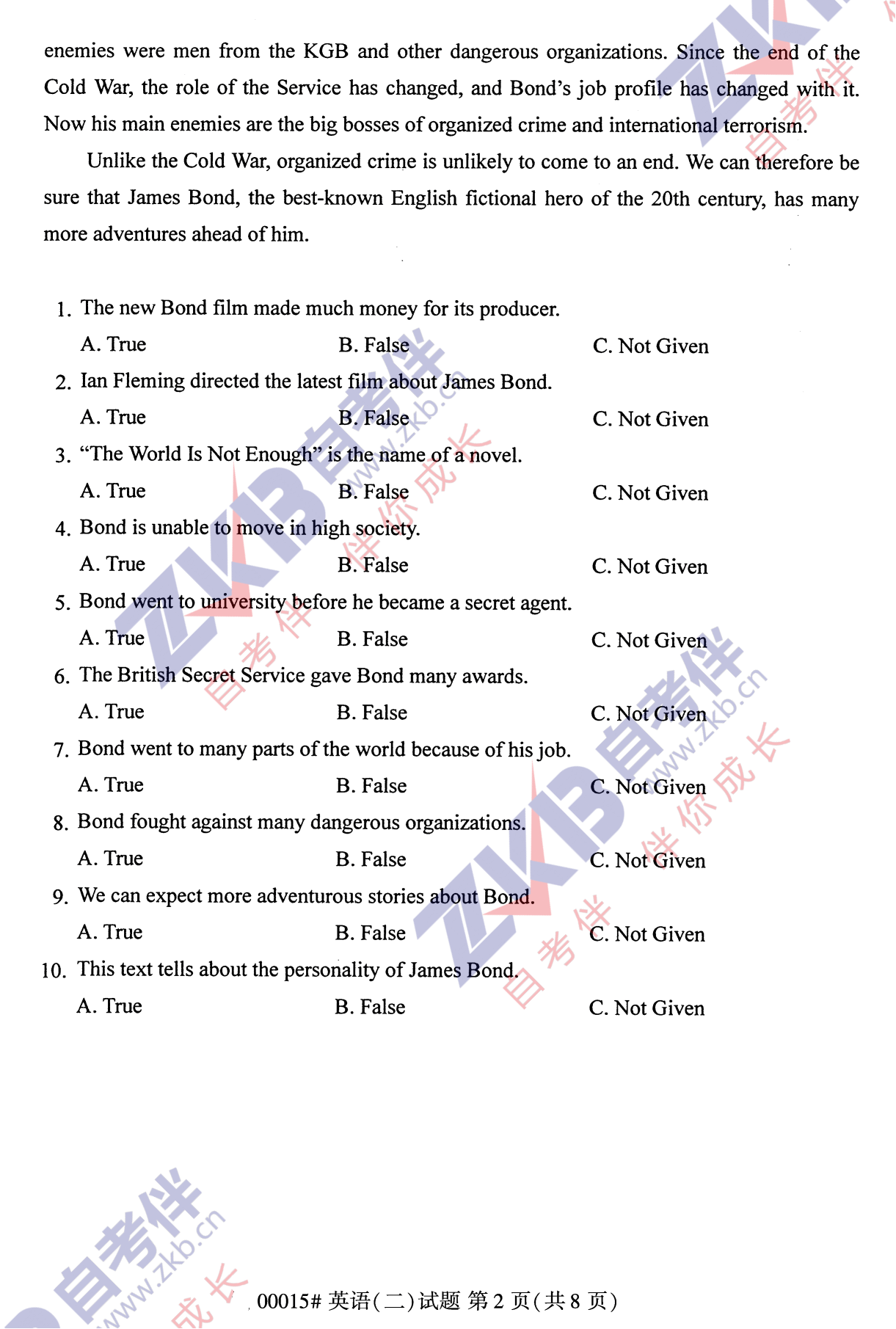 2021年10月安徽自考00015英语(二)学试卷