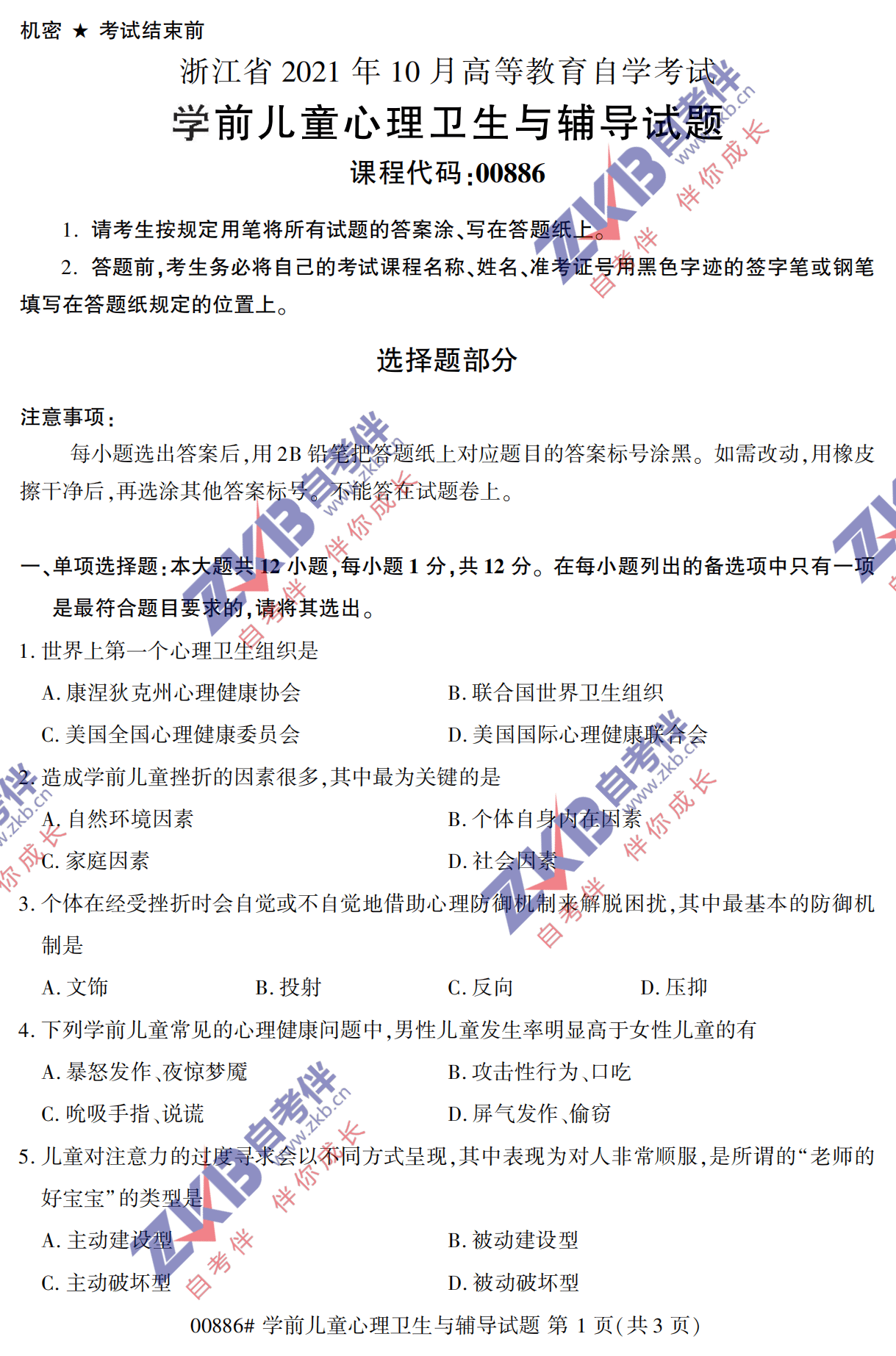 所在位置:安徽自考服务网 > 安徽自考试题题库 > 安徽自考历年真题 > 2021年10月安徽自考00886 学前儿童心理卫生与辅导试卷