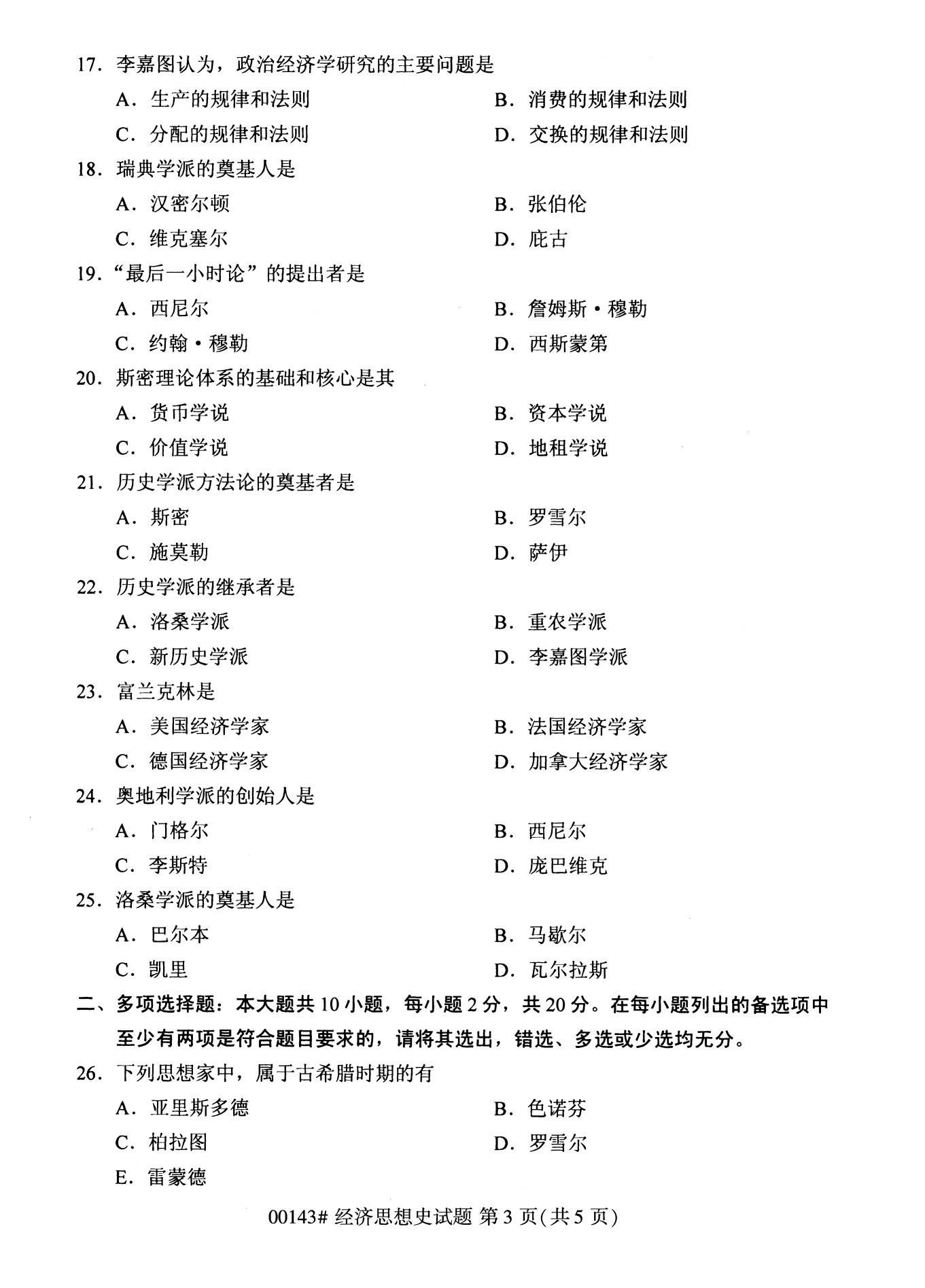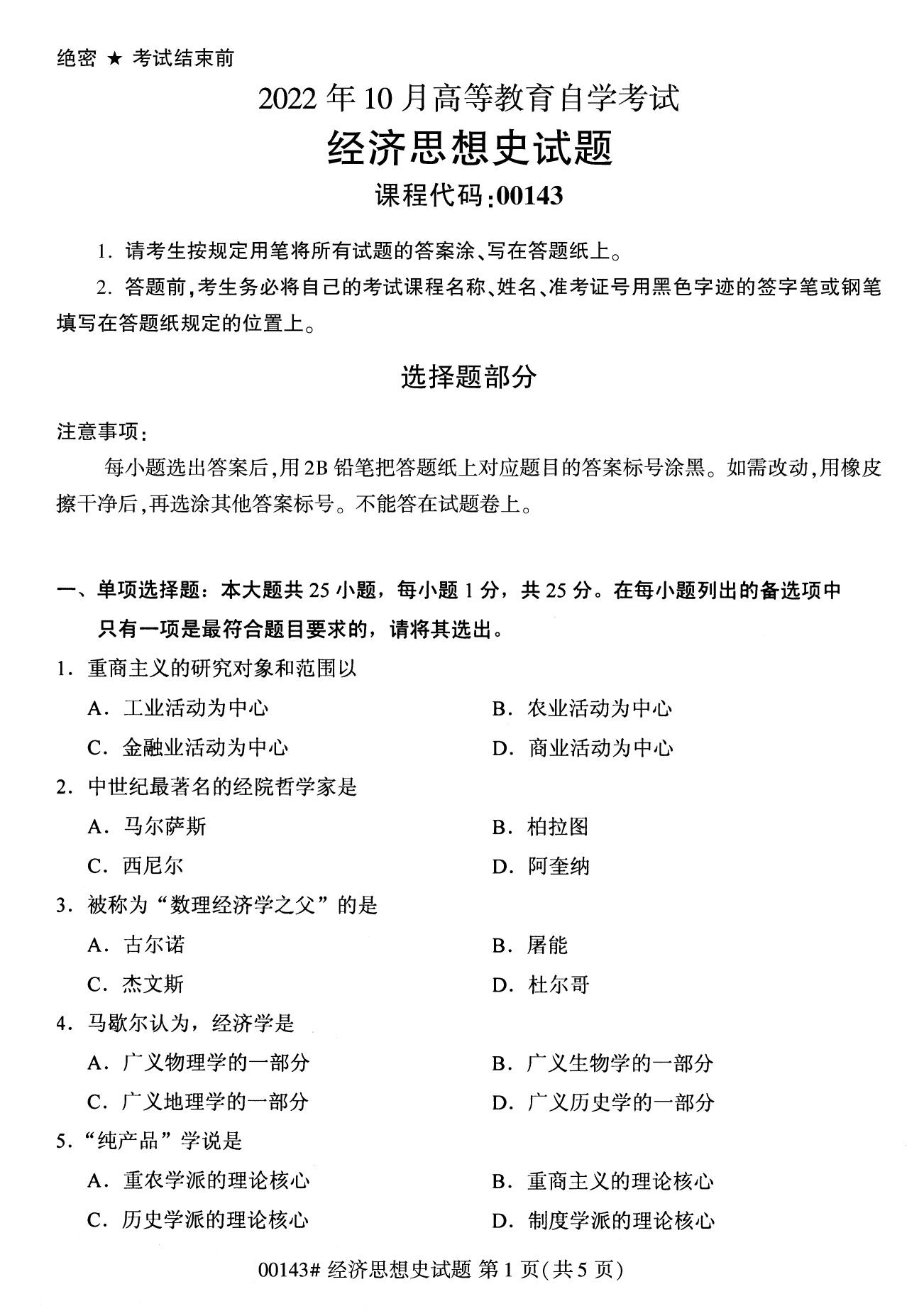 所在位置:安徽自考服务网 > 安徽自考试题题库 > 安徽自考历年真题 > 2022年10月高等教育自学考试经济思想史00143试题